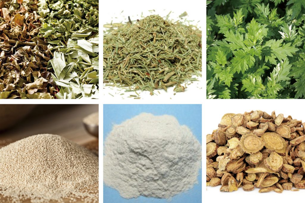 (右上)ヨモギ葉エキス・(左下)植物酵母エキス