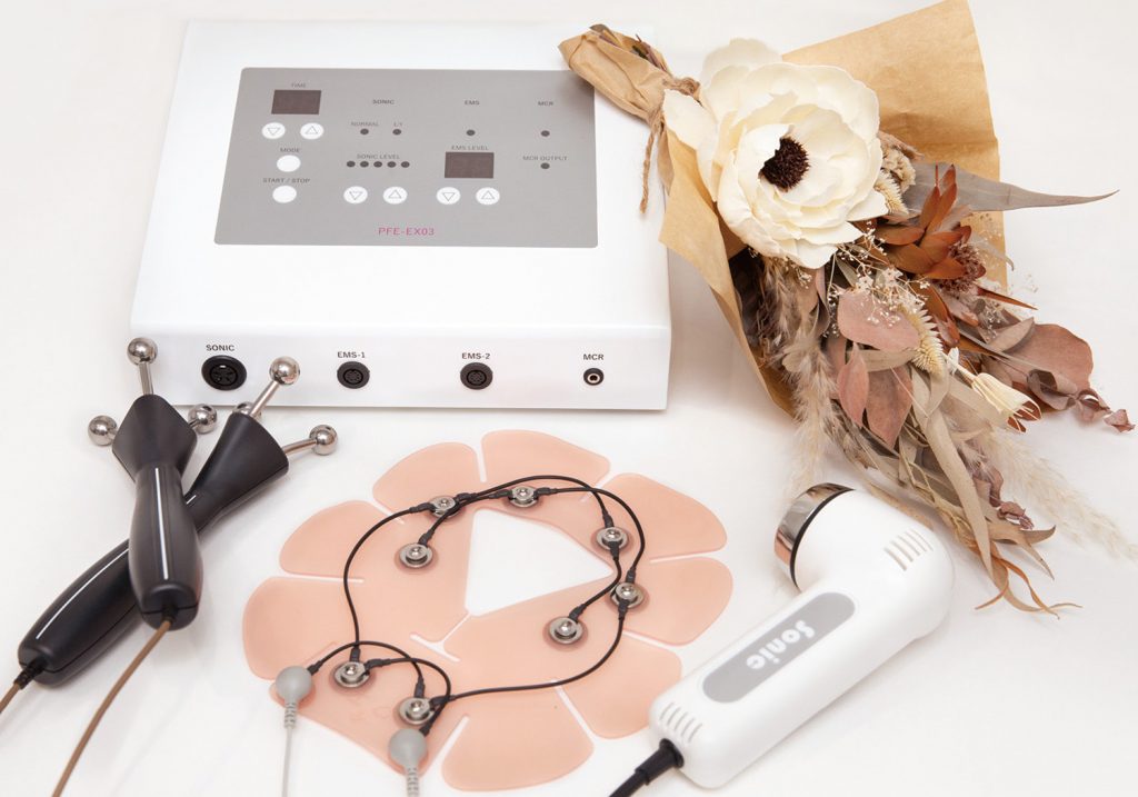 表情筋をしっかり動かし、マイクロカレント(微弱電流)でお肌のめぐりを整えて、驚きの「真珠肌+小顔」に。