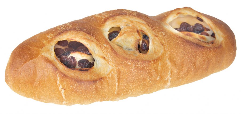 レーズンコッペ370円。レーズンがたっぷり入った大きなコッペパンでお土産にも大人気